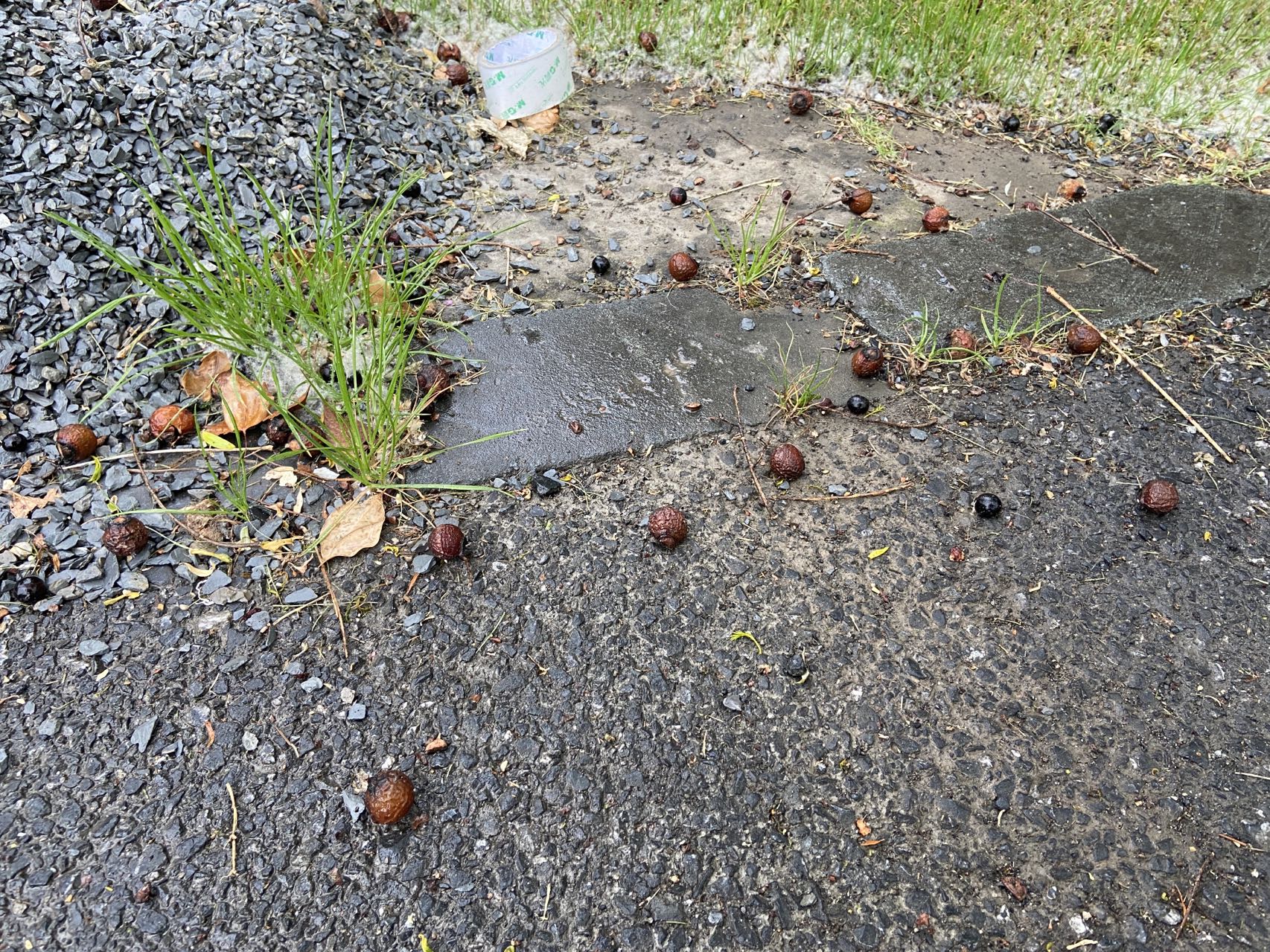 好像是有一次闲来无事吧,走在路上随便踢着地上的果子。那果子长得有点像干掉的荔枝,大小又似龙眼,屁股上有一块栗子般的印记,好吧我承认都不怎么像,反正就是看起来感觉哪里见过。